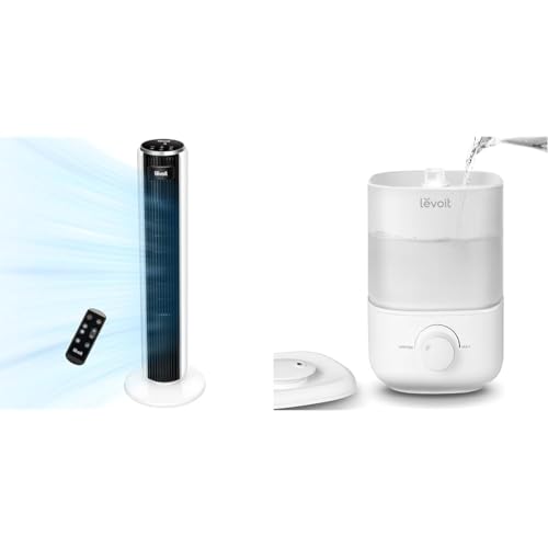 LEVOIT Ventilateur tour 28 dB silencieux 7 m/s avec mode veille avancé et télécommande Humidificateur Classic 160 2,5 L avec veilleuse pour chambres d'enfants et chambres