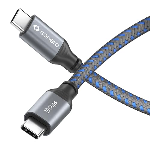 Sonero® Câble USB-C vers USB-C, transmission d'images 4K 60 Hz, USB 3.2 Gen 2, DP Alt Mode, transmission de données 10 Go/s, 5A/20V/100W avec puce E-Marker, gris/bleu, 1,00 m