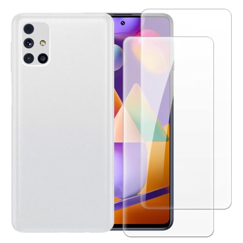 Shantime Coque avec 2 pièces Protection Compatible avec Samsung Galaxy M31S, Étui Antichoc + Verre Trempé pour Sécurité Totale(Blanc)