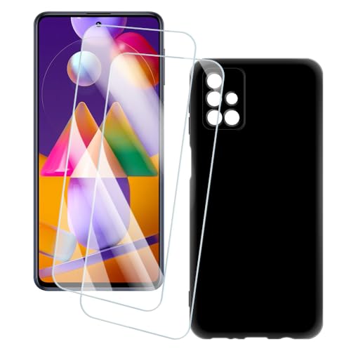 Shantime Coque avec 2 pièces Protection Compatible avec Samsung Galaxy M31S, Étui Antichoc + Verre Trempé pour Sécurité Totale(Noir)