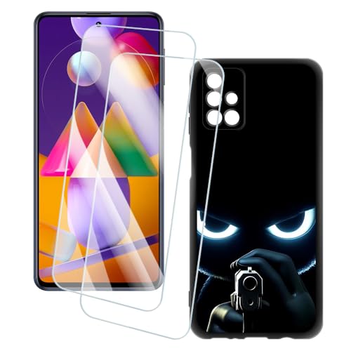 OAGELIM 2 Pack Protège-Écran + Coque Compatible avec Samsung Galaxy M31S (6.5 Pouce) Coque Impression Artistique Personnalisée et Film Verre Trempé (Noir)