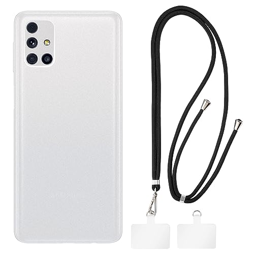 Shantime Coque et Lanière Bandoulière Compatible avec Samsung Galaxy M31S Coque de Téléphone et Sangle de Cou Réglable avec Boucles Métalliques et 2 Patchs(Blanc + Noir)
