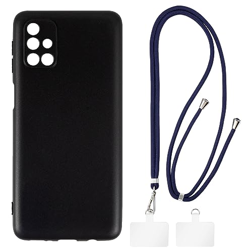 Shantime Coque et Lanière Bandoulière Compatible avec Samsung Galaxy M31S Coque de Téléphone et Sangle de Cou Réglable avec Boucles Métalliques et 2 Patchs(Noir + Bleu)