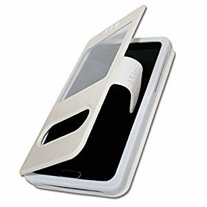 Etui Housse Folio pour Samsung Galaxy M31s Extra Slim X 2 Fenêtres en éco Cuir de qualité avec Fermeture magnétique et surpiqûres Apparentes Compatible pour Samsung Galaxy M31s - Blanc
