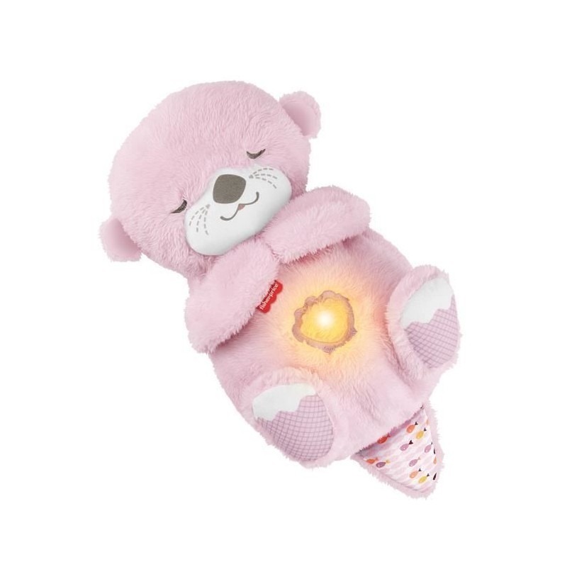 Fisher-Price – Ma Loutre Câlins Bonne Nuit, veilleuse musicale en peluche rose avec mécanisme de respiration et lumières, pour bébés dès la naissance, JLJ33