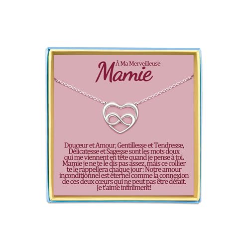 Mamie Collier Cadeau pour Ma Grand Mere de Petite Fille Petit Fils A Sa Grand-mère Cadeaux Fetes Des Grand Meres Grand-Mère Mamy Mémé Coeur Colliers Argent Original Idee Femme Anniversaire Bijoux