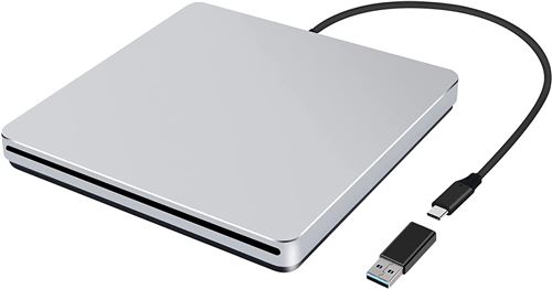 Lecteur graveur DVD CD externe USB type C compact Silver pour Macbook air / macbook pro Mac OS 2022 2023 Hightechnology