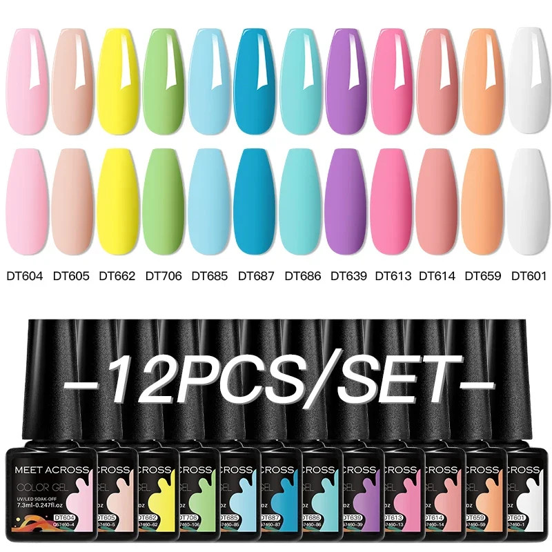 12 Pièces Ensemble De Vernis À Ongles Gel 7.3Ml Rose Bleu Néon Macaron Couleur P