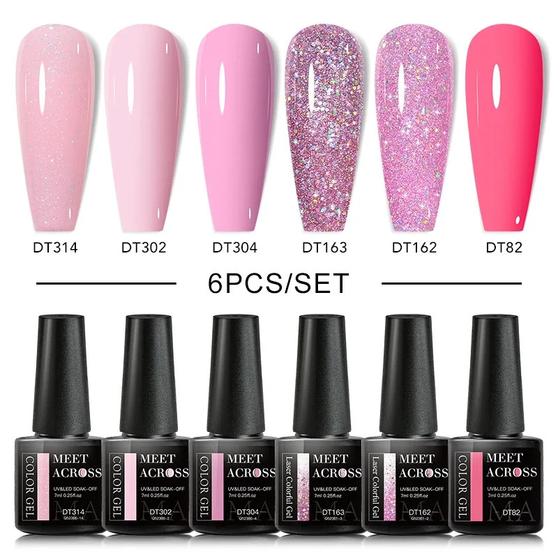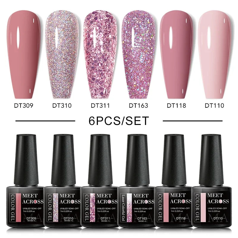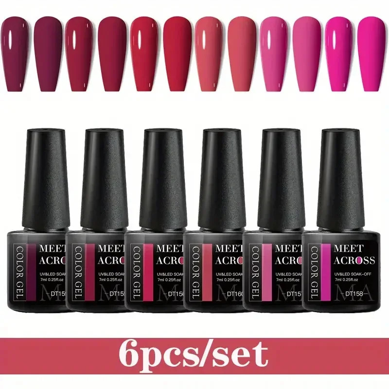 6 Pièces Ensemble De Vernis À Ongles Gel Rose Rouge Vert Macaron Couleur Kit De