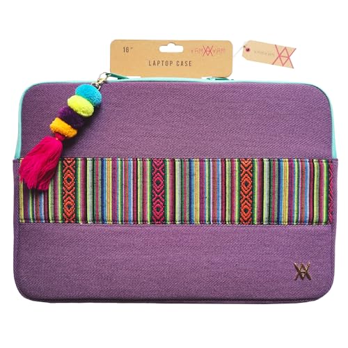 WONDEE VamVam Housse d'Ordinateur Portable pour 15.6/16 Pouces avec Décorative en Tissu de Style Ethnique de Couleurs, Compatible avec Macbook et Tous