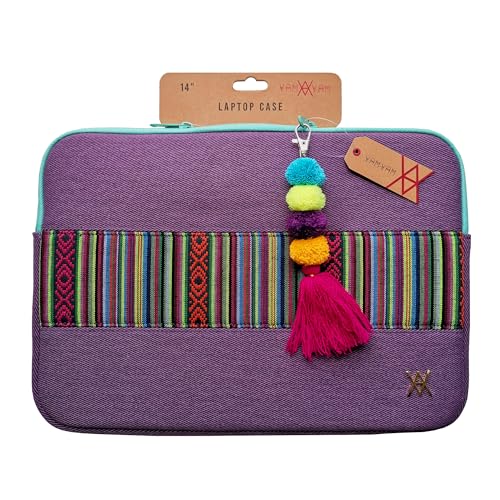WONDEE VamVam Housse d'Ordinateur Portable pour 14 Pouces avec Décorative en Tissu de Style Ethnique de Couleurs, Compatible avec Macbook et Tous