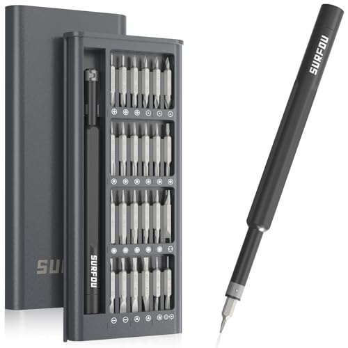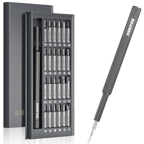 SURFOU 25 en 1 Set Tournevis de Précision, Portable Set Tournevis Bricolage Electronique de Réparation Kit avec 24 Embouts Magnétiques Tournevis Torx Hex pour PC, MacBook, iPhone, Lunettes, Montre
