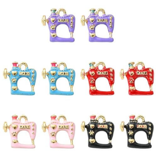 Airssory Lot de 10 breloques 3D en émail pour machine à coudre 5 couleurs - Thème outil de couture - Pour bricolage, bijoux, bracelet, collier, boucles d'oreilles, sac, porte-clés, décoration de