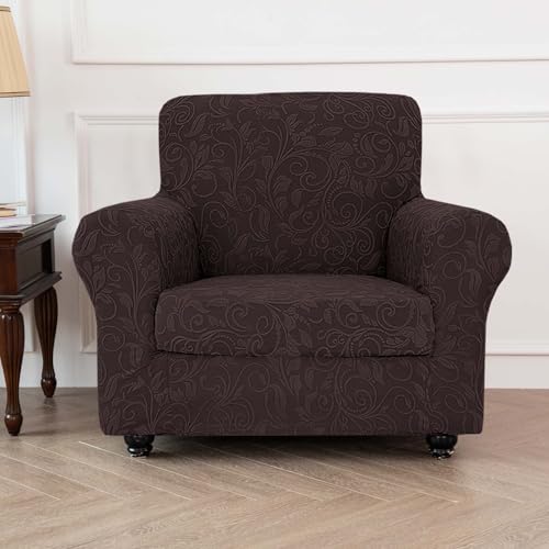 LiveGo Lot de 2 housses de chaise et canapé en jacquard extensible luxueux et doux - Protection de meuble avec base élastique pour animaux de compagnie, lavables en machine (chocolat A, 1 place)