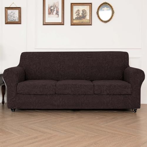 LiveGo Lot de 4 housses de canapé en jacquard extensible et doux de luxe - Protection de meuble avec base élastique pour animaux de compagnie, lavables en machine (chocolat A, 3 places)