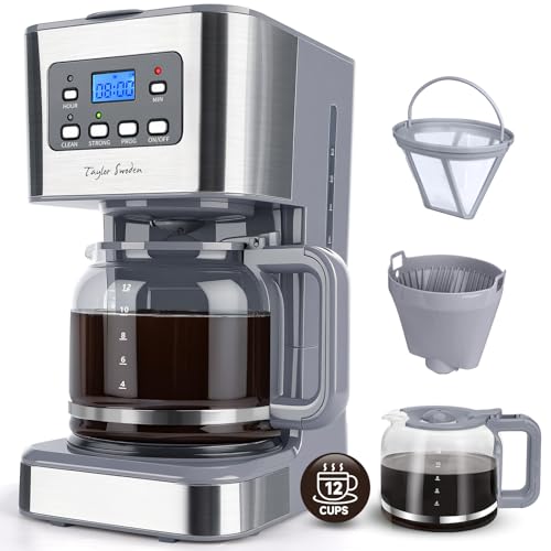 Taylor Swoden Cafetiere Filtre, Programmable 24h Cafetiere Electrique 1,5L à 12 Tasses, Machine a Cafe Maintien au Chaud et Anti-Goutte 40 Min, Infusion Rapide, 950W, 0% BPA, Gris- Pewter