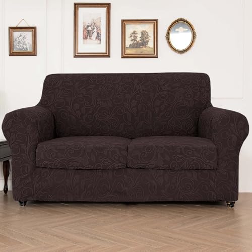 LiveGo Lot de 3 housses de chaise et canapé en jacquard extensible luxueux et doux - Protection de meuble avec base élastique pour animaux de compagnie, lavables en machine (chocolat A, 2 places)