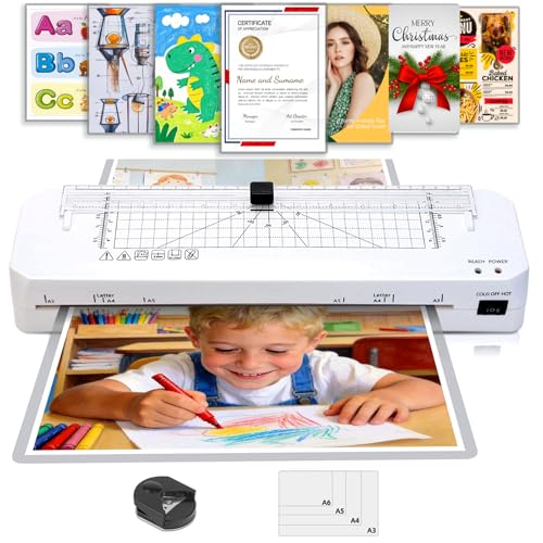 Plastifieuse A3 avec réglages chaud et froid et 30 pochettes A4/A3/A5/A6, Machine à Plastifier 5 en 1 avec coupe-papier et arrondisseur d'angle, plastifieuse pour Bureau Maison École