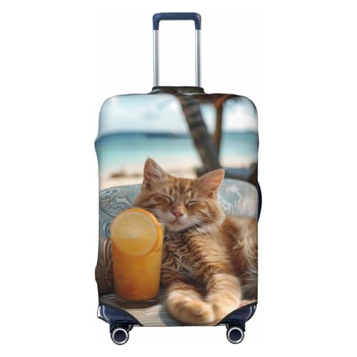 Housses de protection élastiques pour bagage de voyage avec chat relaxant avec jus d'orange, 45,7 à 81,3 cm, noir, L