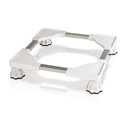 Xavax Support de machine à laver (socle réglable, largeur et longueur réglables, cadre de base réglable en hauteur 13-18 cm, pour machine à laver, sèche-linge, réfrigérateur jusqu'à 150 kg) blanc