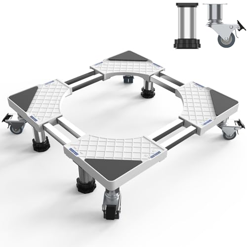 MorNon Socle de machine à laver stable et réglable - Avec 4 roulettes et 8 pieds - Longueur : 40-68 cm - Hauteur : 9,5-13,3 cm - Pour sèche-linge
