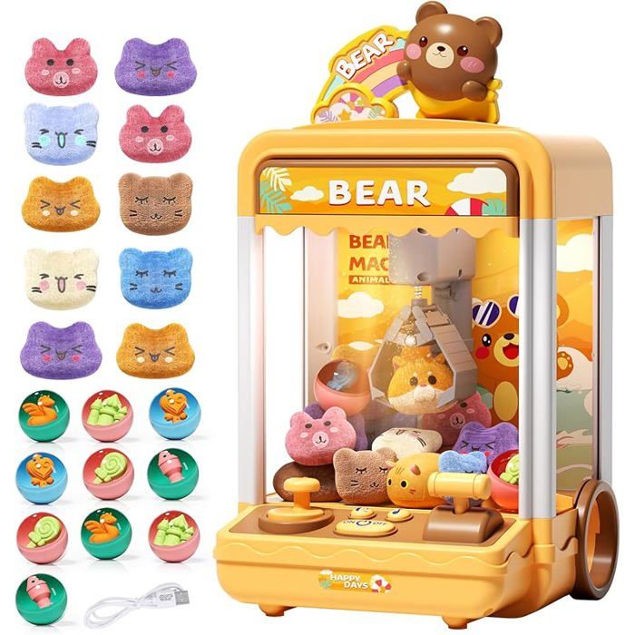 Machine à pinces pour poupées-Machine à Pince XVX pour Enfants Mini Distributeur de Bonbons 10 Peluches + 10 Mini Jouets Inclus