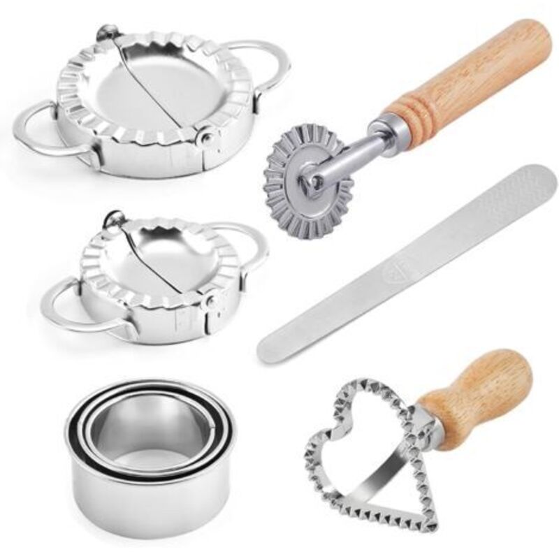 Applicable Moule Ravioli,7 Pièces Acier Inoxydable Ravioli Maker Et Ravioli Cutter Kit,Moule à Dumplings,Machine à Boulettes,Accessoires de Cuisine
