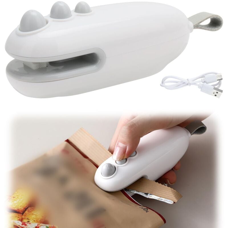 Mini scelleuse et coupe-sacs, machine à sceller à chaud portable avec dos magnétique, charge USB de type C, verrouillage de sécurité, blanc – Garde