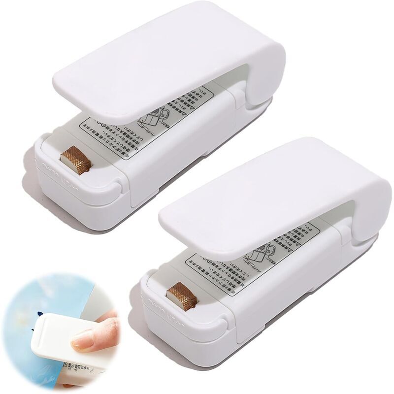 Mini Machine A Sceller Base Aimantée Portable Sachets Plastique Capuchon Blanc -