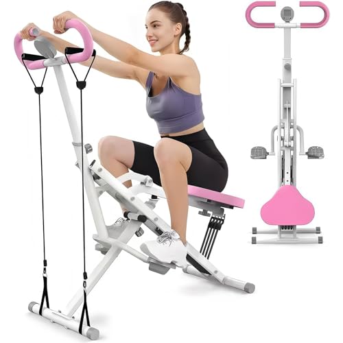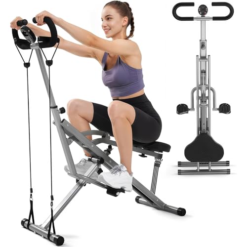 SogesGame Machine à squat et rameur 2 en 1 avec bande de résistance, machine à squat assistée robuste pour salle de sport à domicile, abdominaux et abdominaux, équipement de fitness pliable pour
