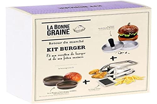 LA BONNE GRAINE - 1 Coupe-frites - 1 presse steak haché - 4 moules à pain burger GOBEL - 29 x 14 x 29 cm - Fabriqué en France
