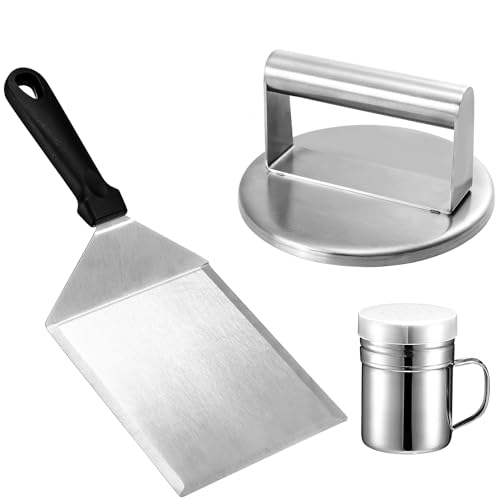 FAMCUCHE Smash Burger, 4,4 Pouces Presse Steak Haché en Acier Inoxydable avec Pelle, Presse a Hamburger pour Préparer de Délicieux Hamburgers, Galettes, Barbecue
