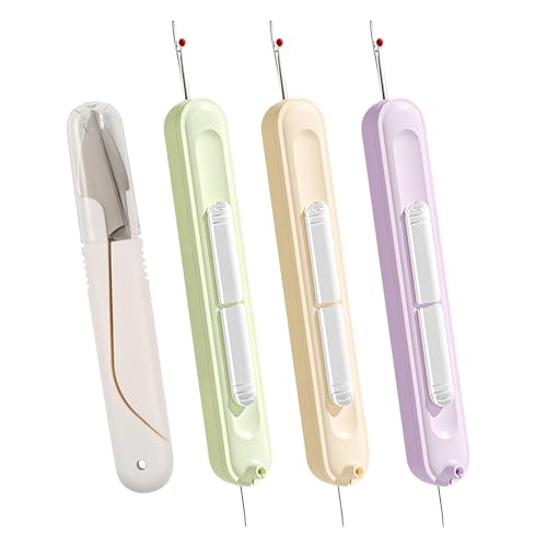 Luxvara 3 Pièces Enfile Aiguille, Outil 2 en 1 Enfile-Aiguille Découseur, Enfile Aiguille Machine à Coudre, Decouseur Fil Couture et Ciseaux à Ressort, pour Tricot Broderie, 3 Couleurs