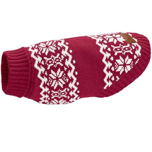 Hunter Pull pour Chien Birka - Pull en Tricot Chaud pour Chien - Fil Chenille Doux - Col roulé et Motif norvégien - Lavable en Machine à 30 °C - Couleur : Rouge - Taille : 45