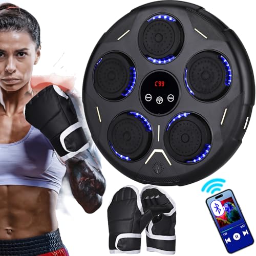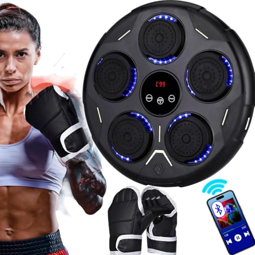 Zosudull Machine de Boxe Musicale Bluetooth Intelligente, Boxeur Musical Mural avec lumière LED, équipement de Boxe Bluetooth pour Enfants/Adultes, Cible de Boxe Murale avec Gants de Boxe