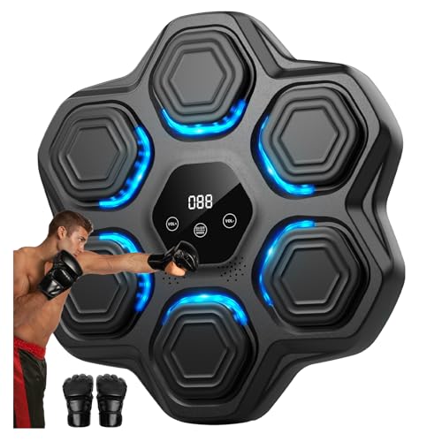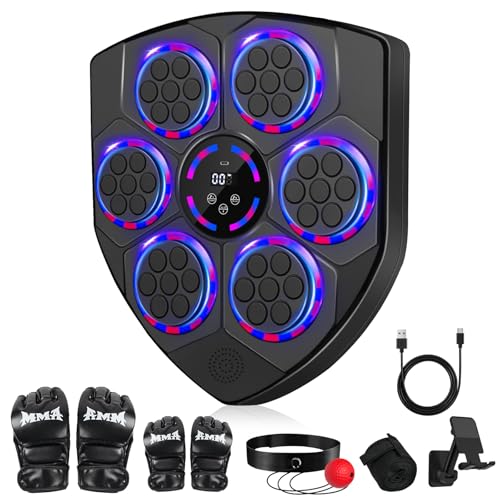 XJKH Machine de Boxe Musique Cible Électronique Murale Entraîneur Boxe avec 6 Lumières et Capteur Bluetooth pour Exercices à Domicile Inclus Gants de Boxe Parfait pour Adultes