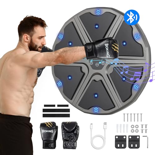 Joellfuner Music Boxing Machine pour Enfants et Adultes, Machine de Boxe Musicale Mural avec Comptage Intelligent, Soutien Bluetooth, Contrôle du Volume et Gants de Boxe, pour Accueil Gym Entraînement