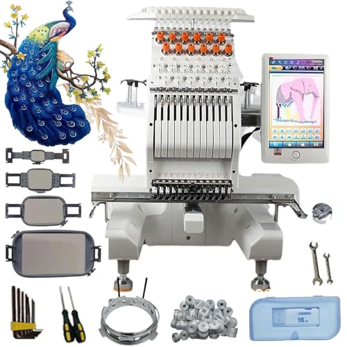 Machine à broder intelligente avec coupe automatique des fils et écran LCD, 12 aiguilles, zone de broderie de 20 x 30 cm, 500 motifs pré-stockés pour un usage professionnel et amateur
