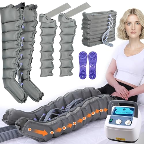 Machine de compression avancée pour les jambes avec 6 coussins d'air - Bottes de pressothérapie électriques pour le drainage lymphatique et le traitement du lipœdème des jambes (corps entier)
