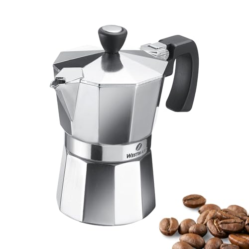 Westmark Machine à Expresso Brasilia, 1 Pièce – Cafetière Classique pour 3 Tasses – Cafetière Robuste en Aluminium pour Café Aromatique – Argent-Noir