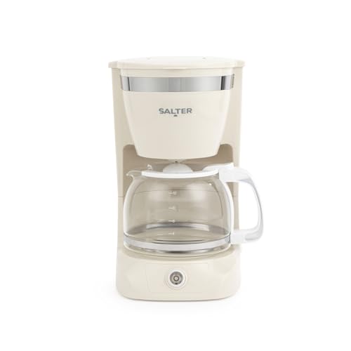Salter Machine à café filtre rétro Carafe en verre de 1,25 L, Prépare 10 tasses, Convient pour le café moulu, Garde au chaud jusqu'à 30 minutes, Filtre amovible, Arrêt automatique, 800 W, Crème
