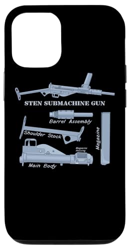 Sten Gun British WW2 Diagrammes de Pistolets de sous-Machine Coque pour iPhone 13 Pro Max