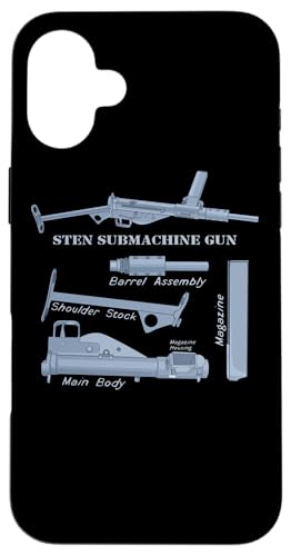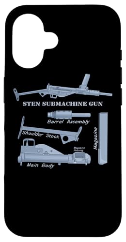 Sten Gun British WW2 Diagrammes de Pistolets de sous-Machine Coque pour iPhone 16 Plus