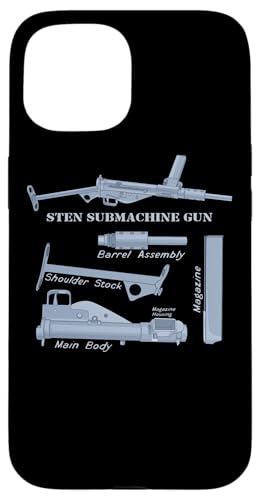 Sten Gun British WW2 Diagrammes de Pistolets de sous-Machine Coque pour iPhone 15