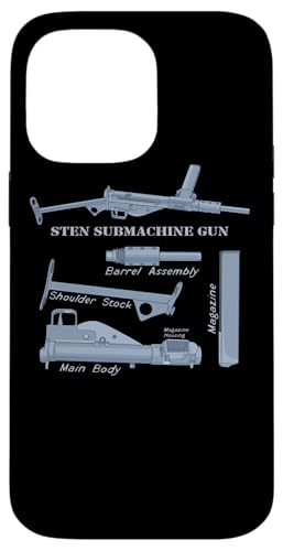 Sten Gun British WW2 Diagrammes de Pistolets de sous-Machine Coque pour iPhone 14 Pro Max
