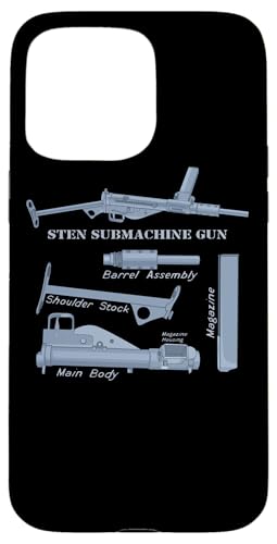 Sten Gun British WW2 Diagrammes de Pistolets de sous-Machine Coque pour iPhone 15 Pro Max