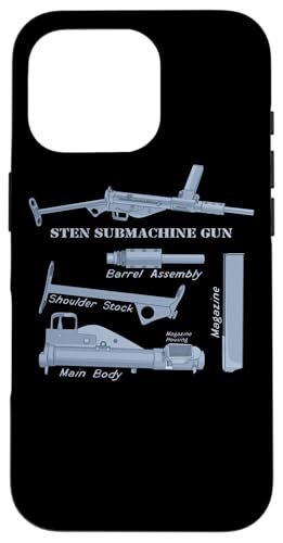 Sten Gun British WW2 Diagrammes de Pistolets de sous-Machine Coque pour iPhone 16 Pro