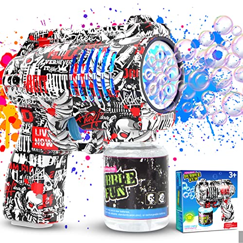 Panacare Graffiti Pistolet à Bulles, Machine à Bulles pour Enfants 4000+ Bulles/Min avec 130ML de Liquide à Bulles, Machine à Bulles Cadeau pour Enfants/Anniversaire/fête, Bubble Gun.
