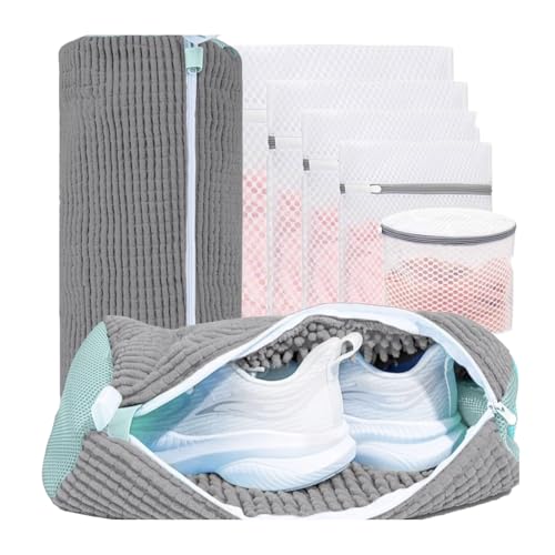 Set de 2 Sacs Lavage Chaussures Machine à Laver – Filet à Chaussures avec Doublure Protectrice 360°, Fermeture Éclair Solide, Sac de Lavage Réutilisable pour Baskets, Tennis, Lave-Linge et Séchante