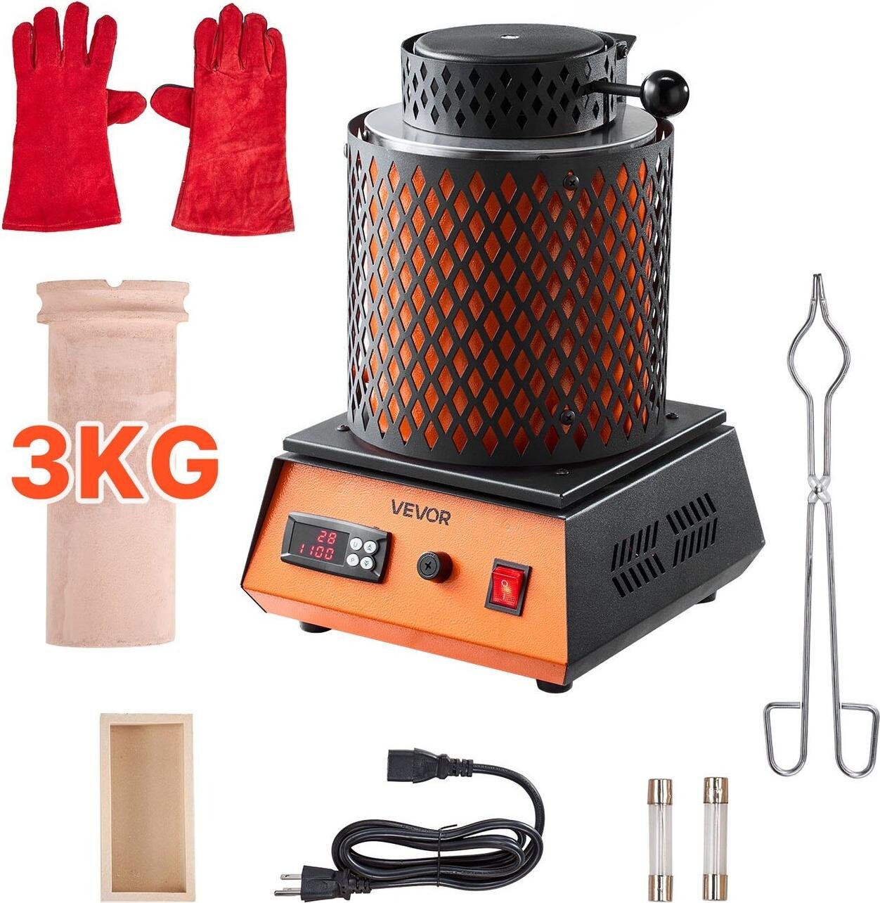 VEVOR machine numérique à fondre l'or avec creuset en céramique de 5 kg, four de fusion électrique 1500 W max. 1150 ℃, kit de four de fusion des métaux pour la fabrication de bijoux lingots métalliques composants métalliques noir